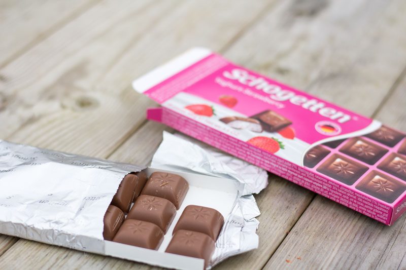 Sen var det dags för fika! Jag hade valt ut två chokladsorter på Gekås, som vi tyckte lät spännande. Den ena var den här, med yoghurt och jordgubb, som var så. himla. god! Tror den kostade 8 kr, så tips om ni ändå ska dit, finns nånstans vid kassorna längst bort från ingången. Hehe.
