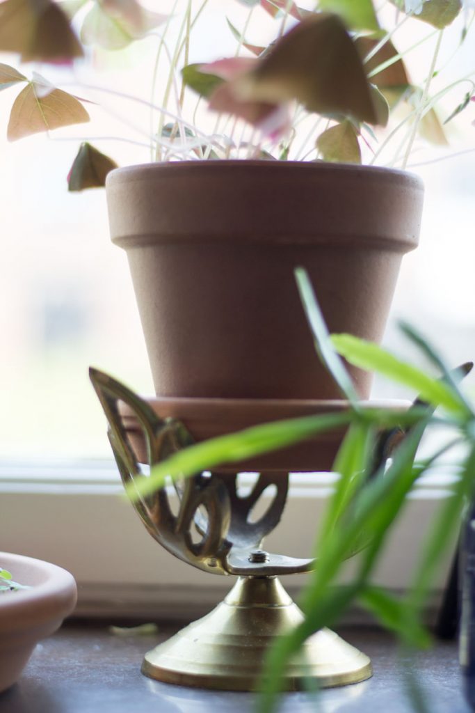 Hittade också den här helfestliga grejen i mässing som jag inte alls vet vad det är för nåt? Men eftersom jag gillar växter (om någon missat det alltså), så tyckte jag såklart att den skulle passa fint med nån kruka! Ingen kruka hemma passade, så den fick bli piedestal i stället. 45 kronor tror jag den gick på, och den fick ersätta den turkosa, upp-och-nervända skålen jag hade där innan, hehe.